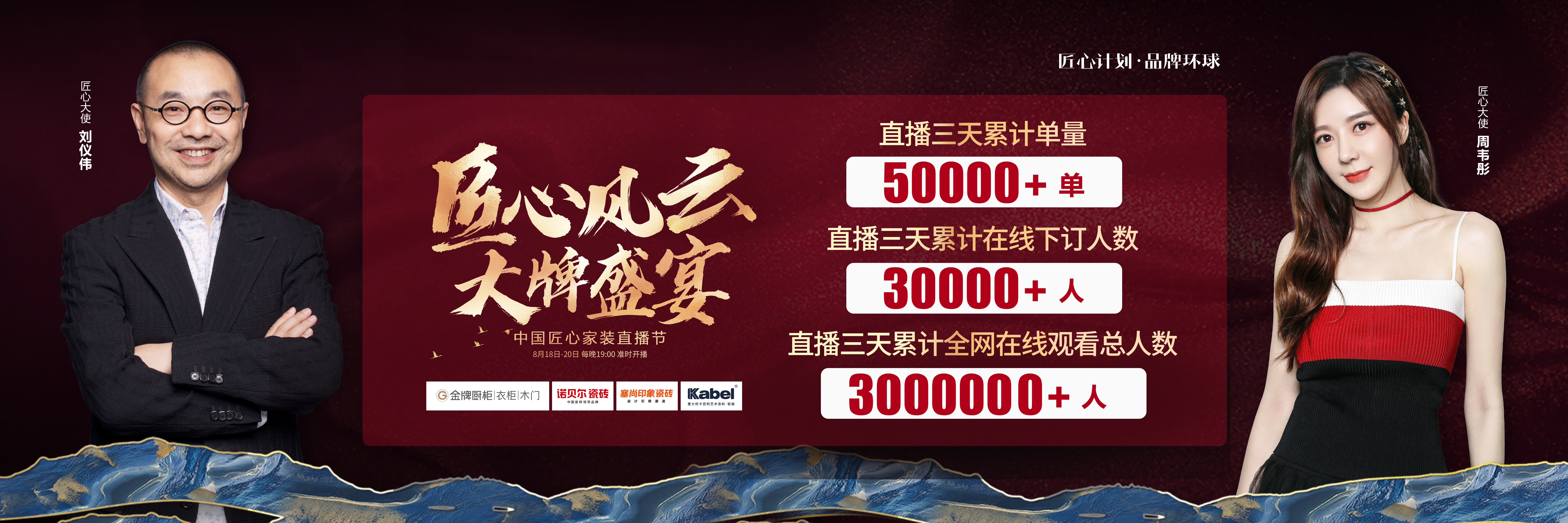 由腾博汇厨柜、诺贝尔瓷砖、塞尚印象瓷砖、卡百利艺术涂料联合缔造,创赢科技系统支持全案营销执行的“匠心风云 大牌盛宴”中国匠心家装直播节于8月20日圆满落...